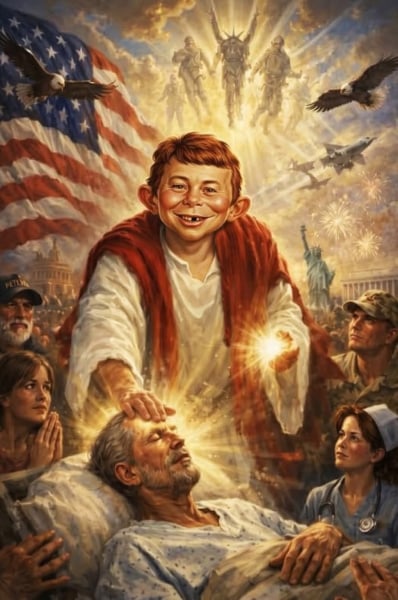 This is my fave of the DJT “playing doctor” memes. (That’s Alfred E. Neuman from MAD magazine.)