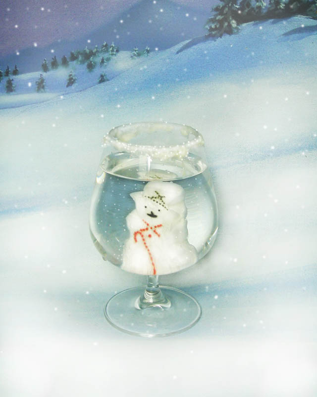 Sprinkle a pinch of sugar into the glass as it is being served to create the illusion of the “Snow Globe”
