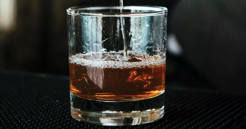 - Strain into a rocks glass over fresh ice. Be careful to keep all solids out of the glass.