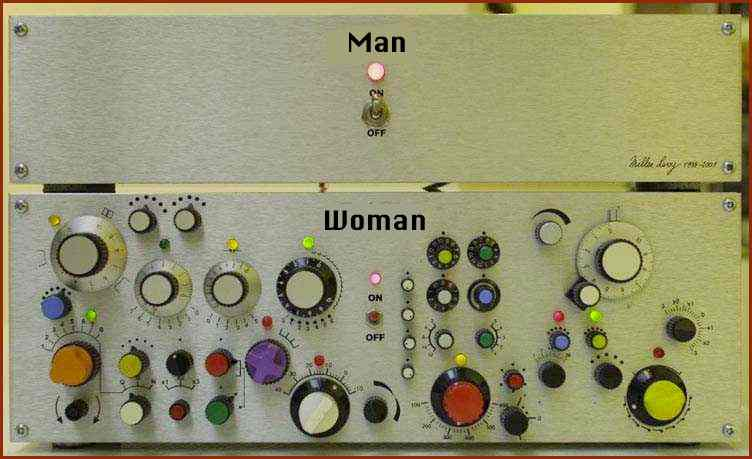 Every one of those little blue balls is a thought about something that needs to be done, a decision or a problem that needs to be solved. A man, of course, has only 2 balls and they take up all his thoughts.
