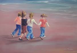 Astorm, you too are a doll! I had the same bangs, how funny is that! So neat that you remember the color of your dress and all. And your WD, too cute. A hermit crab as a pet? Never heard of that, but you are so right about wanting your girls to be compassionate. Adorable picture of the little girls walking on the beach.