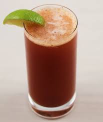 How ‘bout a glass of "UGLY" today? (it's really just red beer) Ingredients : 2 oz tomato juice, 6 oz beer (lager)