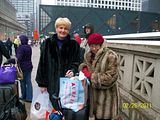 OK, here are my pics....from dinner and the megabus. I really enjoyed our night together, Lago, English, and Addey,.....might say it was the highlight of my trip since I found out my traveling companions are both early to bed, early to rise people.....I can't party like I used to, but Jeesh, asleep by 10 is not me at all. The Palmer House is lovely, but I would just as soon stay at a RedRoof Inn or a cheaper place if a conveninet location and has shuttle buses to the convention center. I really enjoyed walking through the park area (is it Metropark?), the one with that big structure in it that I don't know the name of and seeing all the lights and the ice skating rink. Forget if I mentioned it before, but Kathy's sister got a hairline fracture in her wrist iceskating the lst day when Kathy and I were at cont ed classes. I picked up some tips on diet and sleep deprivation and makeups to avoid, probably things many of you already know. This speaker was a big fan of acupuncture, says it helps with depression and all sorts of things. She is into alternative treatments, but is also an MD and she says it is OK to use Estring , that is does NOT change the levels of estrogen at all. Basically she promotes the Mediterranean diet, although some types of fish are not good for us because of the mercury levels. Not all the courses were strictly dental. Some of them were very repetitive and I almost fell asleep a few times....it is always embarrassing when your head jerks just about when your neck is ready to snap and then you try to look to your right and left to see if anyone noticed. But we have to take so many of these courses to keep our licenses and at least they have the big meetings in good locations where you can sort of mix business with pleasure. They are having a big one in NO the lst of April and although my friend who lives there wanted me to come the end of March I am going to tell her I may wait until April since then I could call it a business expense by going to a class or two. Anyway, sorry to ramble on....I will post my pics and then go check out the other threads and go tell the olderwomen how my trip was. Hope you all did not get too much snow....it was a wet snow coming down yesterday afternoon when we went to the Megabus stop and the bus ended up being almost 40 mins late so we were pretty cold by the time it arrived...there is no canopy or anything, everyone just stands there on the sidewalk waiting for the bus to come along. Oh well, you get what you pay for and I can't knock a $20 round trip ticket. Someone told me Greyhound is going to offer similar service to compete with Megabus. Anyway, thanks to all of you for meeting me for dinner that night and I hope to stay in touch and see you again.