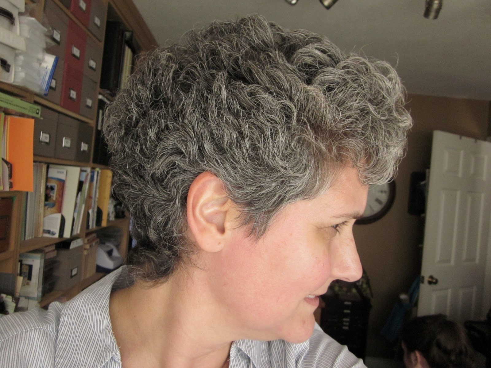 Marie: your hair looks beautiful. I cut mine myself with a Wahl hair trimmer in August as it was becoming too long and unwieldy, and hot! It had grown back to be about the same length and curl as yours (but so much whiter) when I went to the hairdresser this week. My preferred hairstylist wasn't there so I agreed to go with a newly hired young stylist. She gave me a very cropped barbershop type haircut. When I complained that it looked too mannish, she said she would feather it a bit, but there wasn't enough hair left to do that. I'm really back to looking like a chemo patient again. One good thing though is that this cut seems to have taken away all the wiry, coarse hair and for the first time, my hair actually squeaks when I wash it.