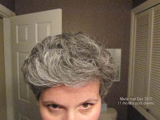 Marie - good to see the pictures. Your hair is nice and thick, pretty grey too! I've noticed mine getting thicker but it has come in way darker than it was. Don't quite know what to do with it. It has no sheen either, I really miss that.