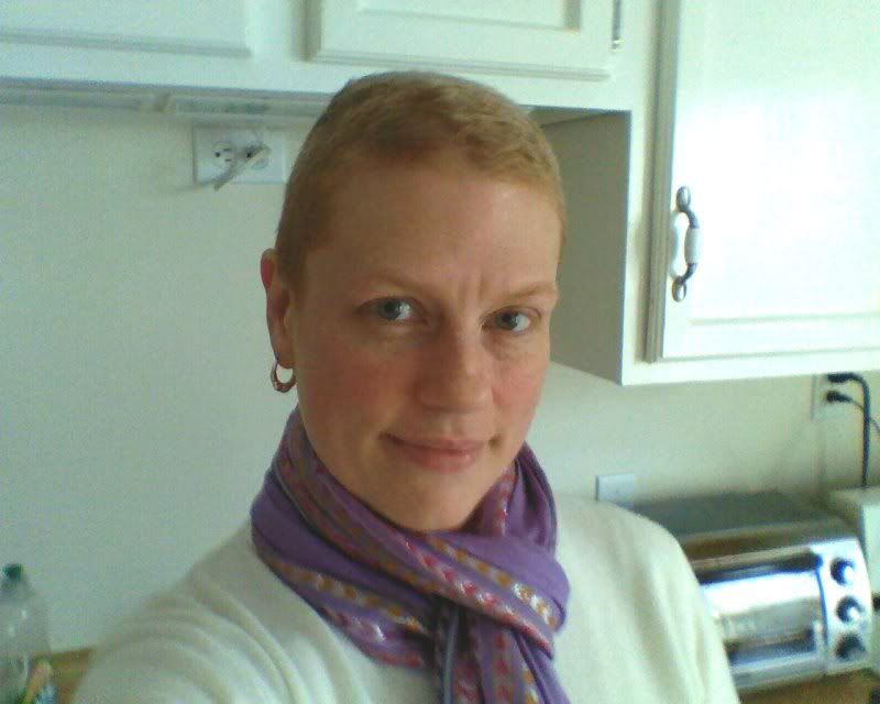 Kat, you really do look like you meant that hair style. It looks great! I'm two weeks behind you and I go out topless on errands, I look like a cancer patient