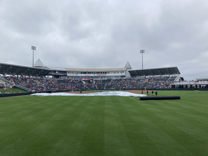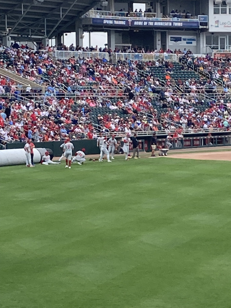 Baseball game was delayed by an hour due to rain. It was windy, gusts 29-35 mph, with scattered rain during the game. The sun tried coming out a few times but couldn’t get through the clouds. We left in the middle of the 8th and it was 4:30 already. Phillies were winning most of the game 4-0; final was 4-1.