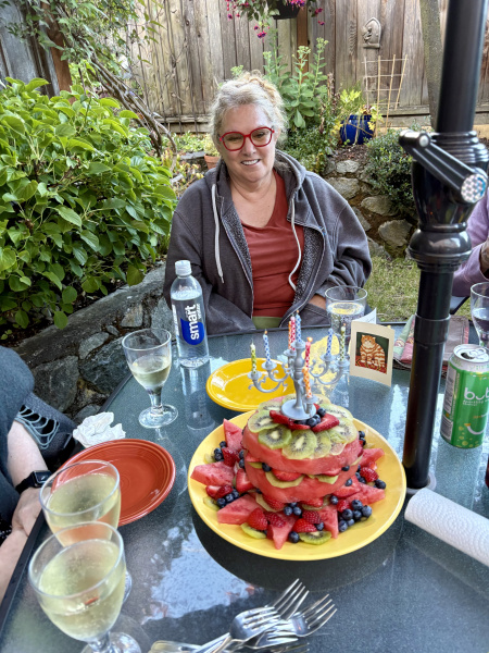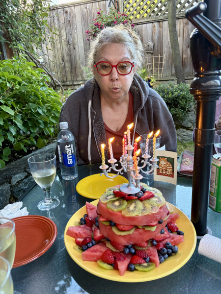 Happy belated birthday, canarycat. Loved your cake and it just reminded me I forgot to add a canteloupe to my grocery list. I'd love a cake like that since I love fruit.