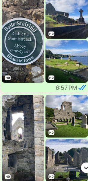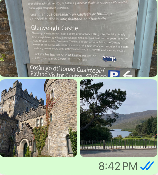 Today was check out and drive. We went into Donegal to spend a few hours - shopping, eating lunch, and touring.I tried to show as much as possible. The Abby Graveyard and the Donegal Castle. I’m using WhatsApp and sending photos to family through it. Then I took screen shots to hopefully save me time and show you more.