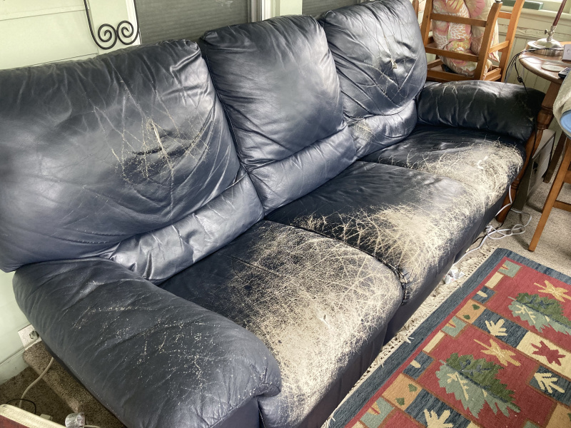 Sofa that was taken way today. I had a navy blue thin quilt covering the seating area.