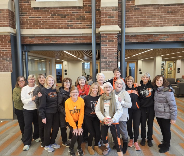 I went to Core & Yoga yesterday. Here's the Wednesday Walking Women checking out the new coffee shop at the local college after our indoor walk this morning.