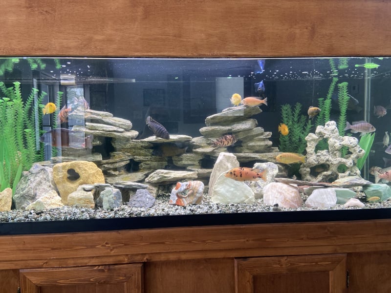 Then yesterday DH wanted to work the on th aquarium vacuuming and doing a water change and replacing some green algae coated rocks with Clean ones. This. Is all a big job and I’ve been trying to talk him into getting an aquarium mainainance service to come in once every few months, but he insists he wants o do it himself. Since our whole married life we’ve always done this together as it’s always been a love of ours keeping aquariums over the years, We’ve always had 2 or 3 tanks going and always loved decorating and maintaining the myself when the kids were growing up whe they were 20 & 50 gallon tanks. Then in the 90’s when we bought our big dream house on the water, he got two huge aquariums. One was 150 gallon in my Art room and one was a huge. 350 gallon Saltwater tank in the living room. He paid a maintenance service because we never kept saltwater 🐠 fish, only fresh water tropical and then the colorful African Cichlids which are also fresh water fish. Over the years we eventually downsized and now only have the one 180 gallon aquarium of African cichlids. So yesterday not wanting him to do all himself, I helped him, which took all afternoon. So I felt good that i was busy getting this done. Then around 3:30 I put on a pot roast quickly, which came out delicious 😋. That was my accomplishment yesterday.
