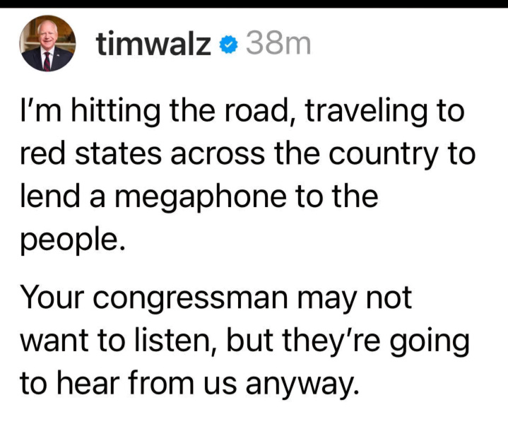 So Congresspeople may want to avoid (pretend) there isn't very much of an issue — so they themselves don't have to address higher up, but the sooner everyone gets squarely on the same page, the better. Sounds like Walz is going to keep it way closer to front and center.