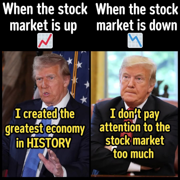 But here is Trump now after promising prices spiraling down — on his first day even and not only have they not done that but everything he has done has made pricing worse and now the tariffs to really jerk the chain hard. I'm not sure who designed this plan for him, but it is definitely a loser for Trump. Someone is perhaps getting whatever it is they want, but Trump is clueless and seems to have no idea that he is laying the bricks for his own personal sidewalk to disaster.