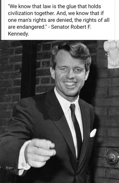 So too, RFK, Sr. He and his brother were such a loss to us. It is hard to imagine how things might have been, but we do not need to go back to the wild West here. Well defined (and carried out in the same manner) laws and standards won't hurt anyone and keep things a lot more orderly in a place as large as the U.S.