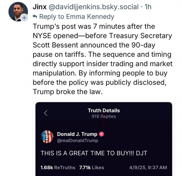 The SEC needs to investigate why Marjorie Taylor Greene made so many stock purchases on April 3 and 4.Just sayin.1 -