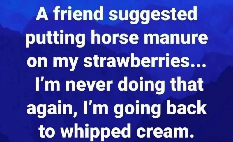 Okay you got me on that one Ruth. I started to think people have used manure for years for fertilizer so what's wrong with that — while continuing to read down. So, I'm laughing uproariously.