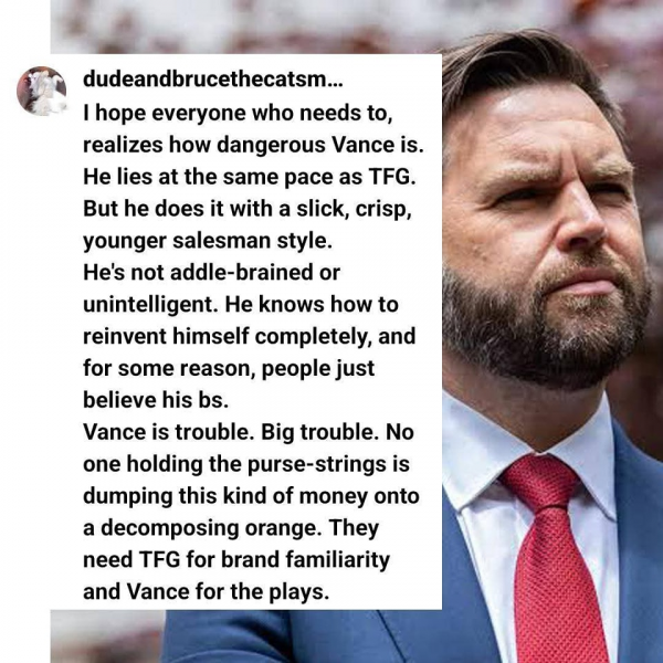 It's what they always do. If you don't have something — go back far enough to manufacture something. Vance is an idiot just like the orange one.