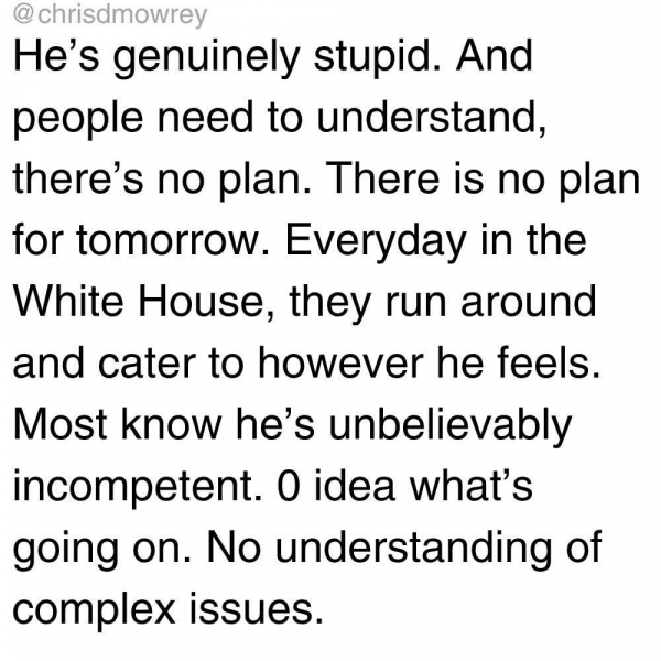 The truth is that there are no deals, there is no plan, and there is no reason to support this disgrace of a president.