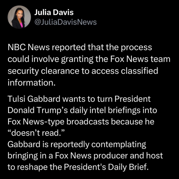 Trump is obviously not qualified to be in the Oval Office and his cabinet members are not qualified for office. He needs a mental evaluation. No man in their right mind posts such ridiculous comments on any Social Media platform. I bet Musk is wishing he never put that much money on Trump. Neither knows the Constitution.