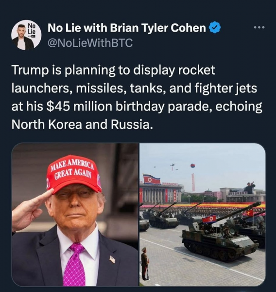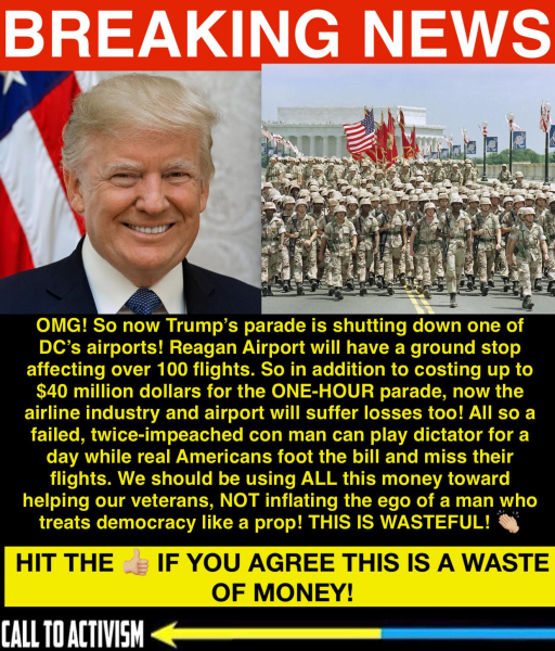 Worse yet is coming. The Nat'l Guard is going to California. I think the number was 2000. Who'd have thought our own military would be sent out against us — for peaceful demonstrations. It was said that the Loon doesn't want anything going on during his big tribute to himself. Well, I understand that but we have rights in this country — or use to. I think there is going to be so much happening that day with so much focus NOT on the Loon's really stupid, expensive ruination of Washington and it's streets that day that only the most deeply maga will see and or enjoy what is going on. I for one certainly will not be watching any part of anything of the parade.