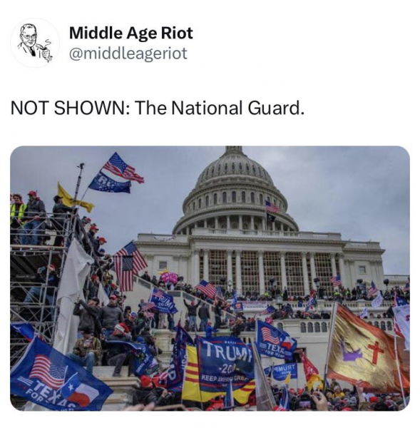 The irony of the LA situation is that the mob scenes there resemble what occurred on 1/6 but he didn't call the National Guard in then to defend the sacred halls of our country and he freed all the insurrectionists. I think the news papers need to start drawing the parallels between theses actions. Plus the blurb about assaulting a police officer now versus then, what hypocrisy.