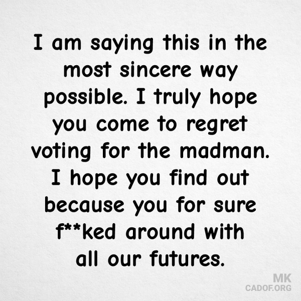 Note here — saying the above may be made me feel better, but it really isn't going to do anything much. Only if we can take back control can we begin the long difficult process of re-installing proper procedures in our government. While it also doesn't help much I do note that many Maga are not fairing well either and that a large score of them have enough left to be angry and upset and feel cheated.
