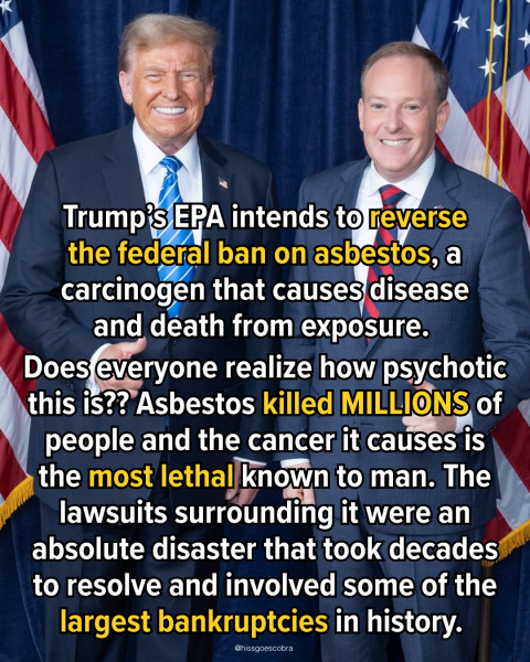 Ths decision is based on the rich wanting to deregulate a lot of harmful products and will result in many deaths but they don't give a flying f**k.