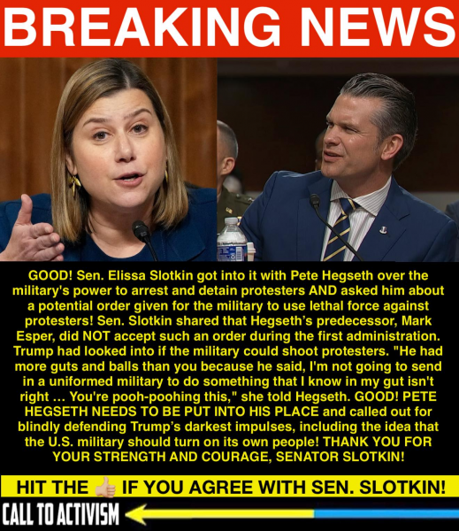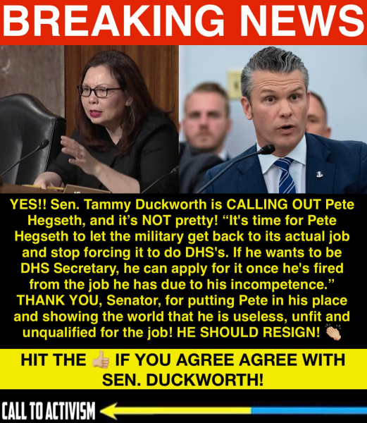 I think I already dropped this in. At that — it is so worth repeating. I'm so thrilled she is my Senator. Durbin is actually for the Chicago area, but I do often write to him and get good answers. Both have made excellent Senators.