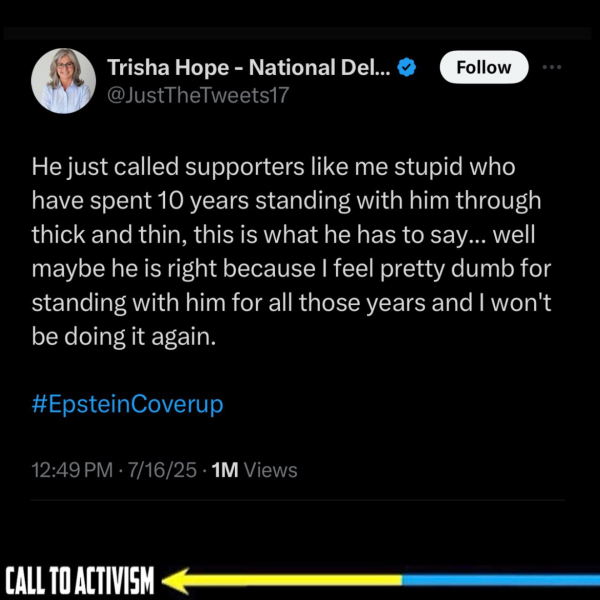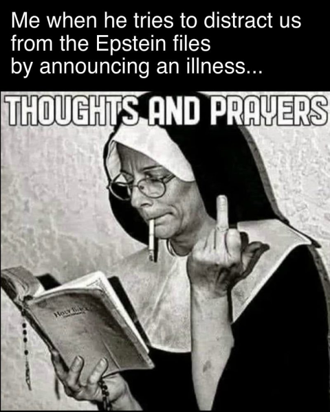 Loon supporters have been known to go back on their word, but I have to say — that the Loon is really racking them up right now. He is obviously feeling intense pressure over Epstein — dead and still causing major troubles. Who'da thought trying to use an Epstein moment to deflect something else was going to cause all of this. I don't know but I pray it just keeps coming.