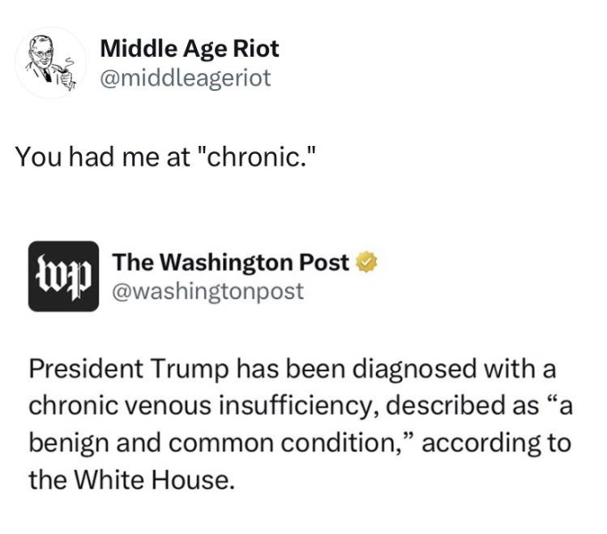 I don't think he will release all his medical records, but I do sort of wonder if we are now being set up for his having to resign or something. I'd think that would be something he'd want to avoid, but I don't know how Banana Peel Bucky can keep holding on in his condition and that is not even taking into account this latest.