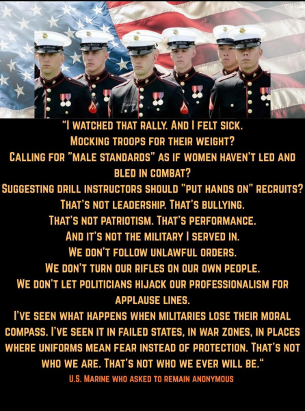 Hegseth will turn over every rock to find that marine. He is driven by revenge and vengeance because he was classified a weekend warrior rather than a committed one. Sad piece of humanity who passes for a man. A drunk, a cheater and a despicable person who meets the criteria for a DEI hire.