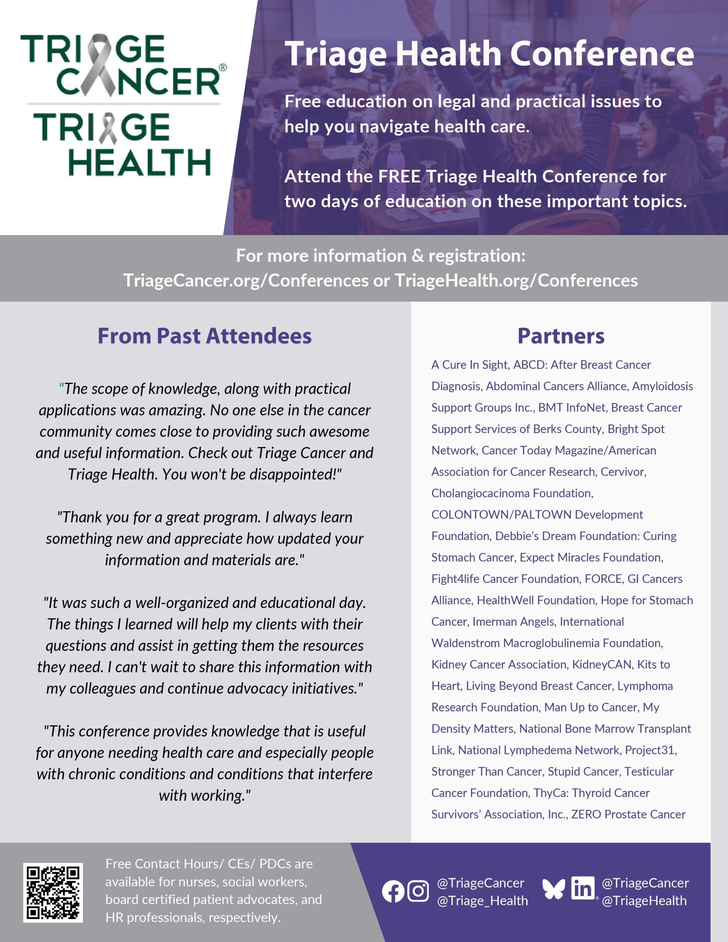 For more information: Cancer Rights Conference | May 2026 | Triage Cancer