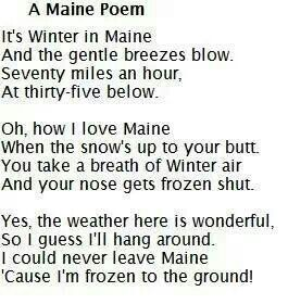 Lol on Maine poem! It's 64 degrees here this morning, overcast and humid.