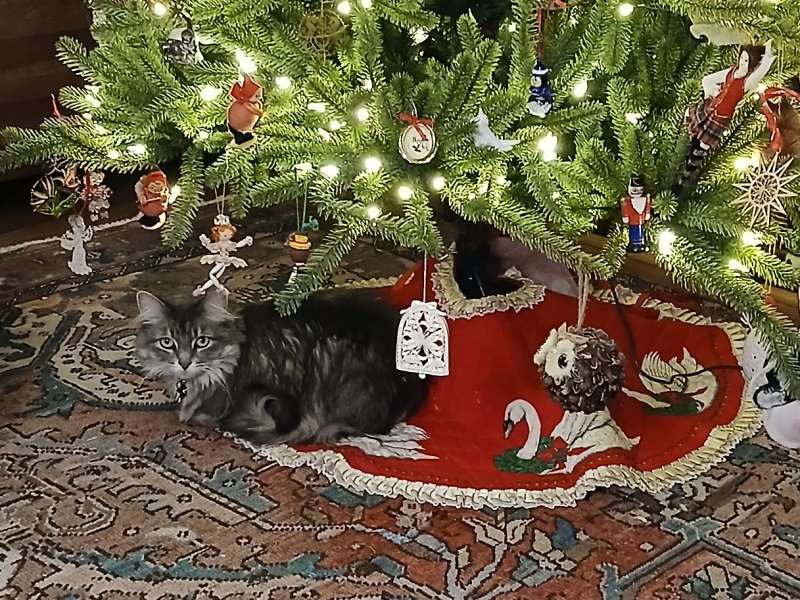 Misty says Merry Christmas to all. This is her first tree and like all my other cats, it seems to be a magnet for her, too.