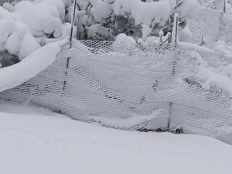 It has pulled parts of the fencing, we erected to keep the deer out of one flower bed, to the ground in one section. It is chicken wire so it will be replaced with heavier fencing and stakes this summer. DH will knock the snow off and see if he can pull it up again. The deer are really hungry now and the winter has been brutal for them. Given a chance they will invade this area and make a picnic of the bushes.